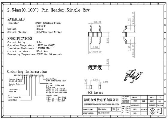 | ハイライト: | PA6T横のPinヘッダーのコネクター,耐火性の横のPinヘッダーのコネクター,SGS 3Aの単一の列ヘッダーのコネクター |